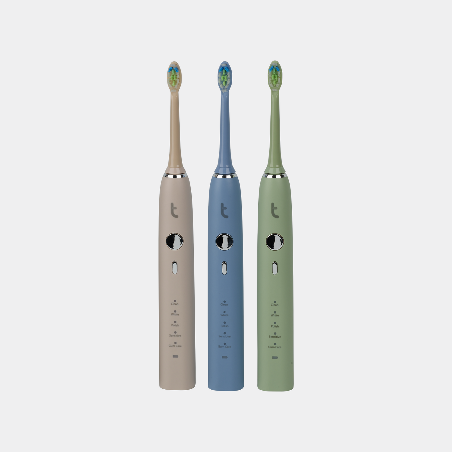 De Toothbruzh E-Serie Elements is een elektrische tandenborstel, speciaal ontworpen voor je badkamer. Verkrijgbaar in de stijlvolle kleuren Ocean, Forest, en Desert, biedt deze tandenborstel een krachtige reiniging en gaat de batterij tot 90 dagen mee. Een perfecte combinatie van functionaliteit en design voor jouw dagelijkse mondverzorging.